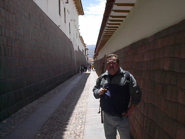 ******* Below is my friend George Priola at the famous "Gringo Alley". Take note of the stone work on the foundations of the structures in the alley, these are the original foundations built by Incan tradesmen with just stone age tools. While in Cuzco check out Momma Africa's and Rosie