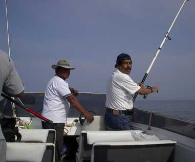 the photo below, Here is Alfredo Pinto trying his hand at saltwater fishing off